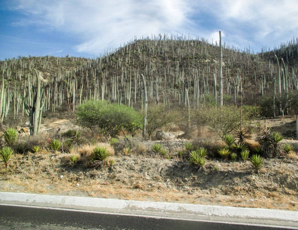 Los pobres viejitos, los cactus columnares, de nuevo empezaron a doblarse y su cabecita se volvió blanca, algunos de ellos al encorvarse, se recuestan en alguno de los que tienen cerca, empezaron a adelgazar, no se puede decir que se le ven las costillas pero si han perdido aquella obesidad con que la temporada de lluvia anterior los había dejado, eso sí, aun no están grises, tampoco verdes, se puede decir que guardan alguna reserva de agua que si se viene una sequía muchos la sobrellevarán, ya que son expertos en administrarla.