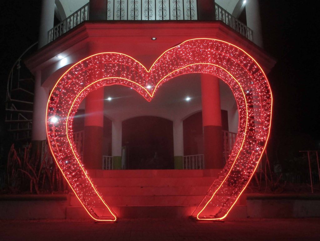 Crucé el parque bien abrigada, pues allá arriba la brisa hiela. Ahí sin esperarlo me topé con un gran corazón rojo que brillaba, adorno para las bodas comunitarias que se habían realizado.