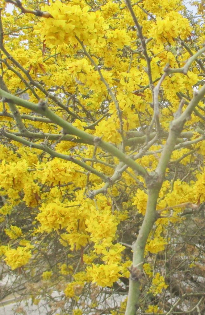 El desierto se viste de gala dorada, es sublime este instante donde la aridez regala una vida de emperador, seco y brillante como la mies, justo antes que la Primavera nos tome por sorpresa. El paisaje la va anunciando, en un susurro, con un rocío de pétalos amarillos, que despierta a las demás flores, llegan a un acuerdo, se dicen unas a otras: